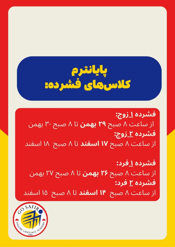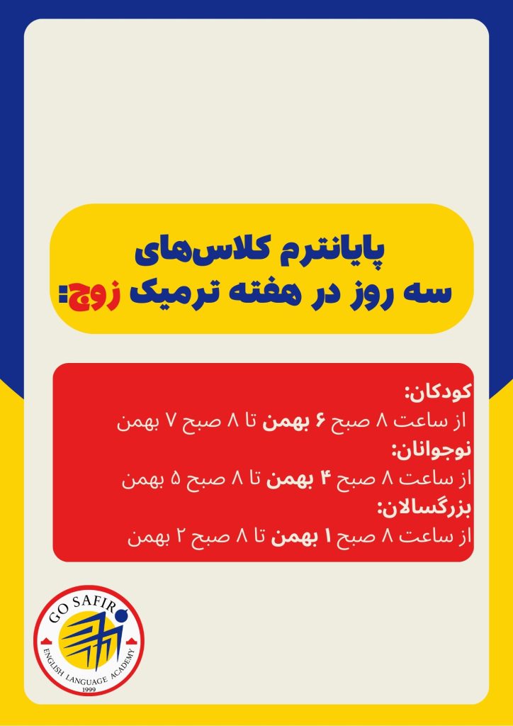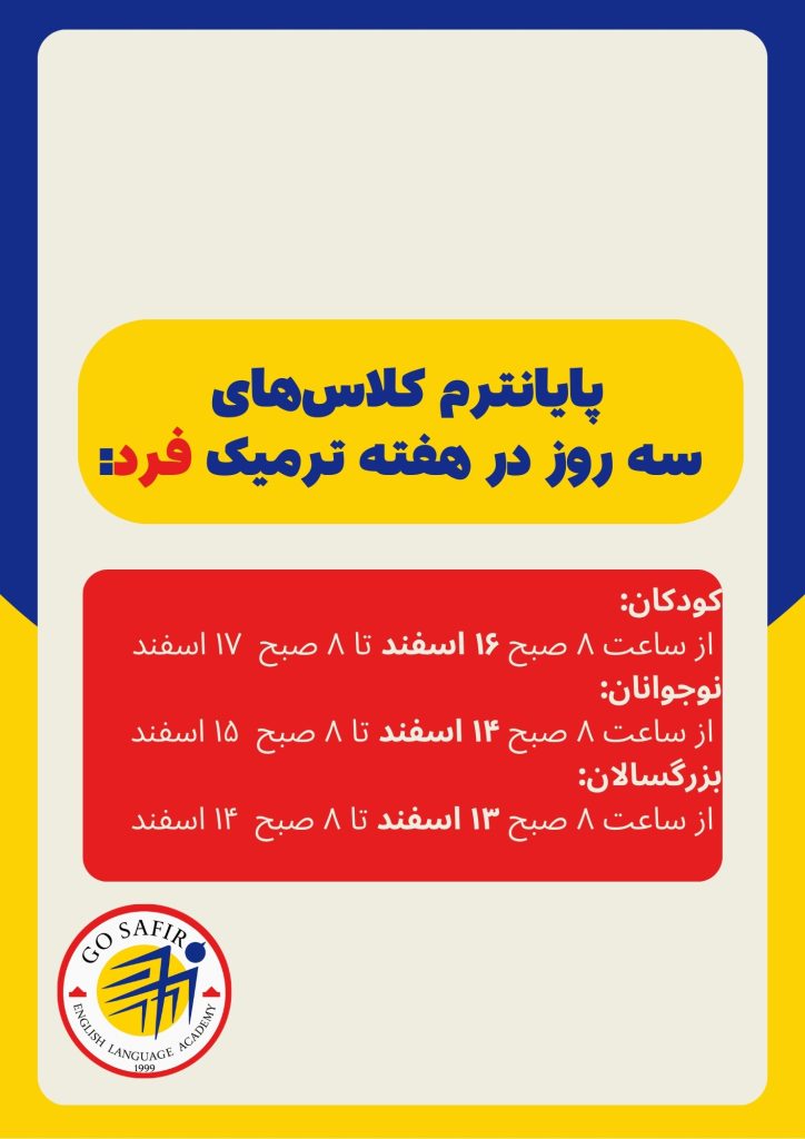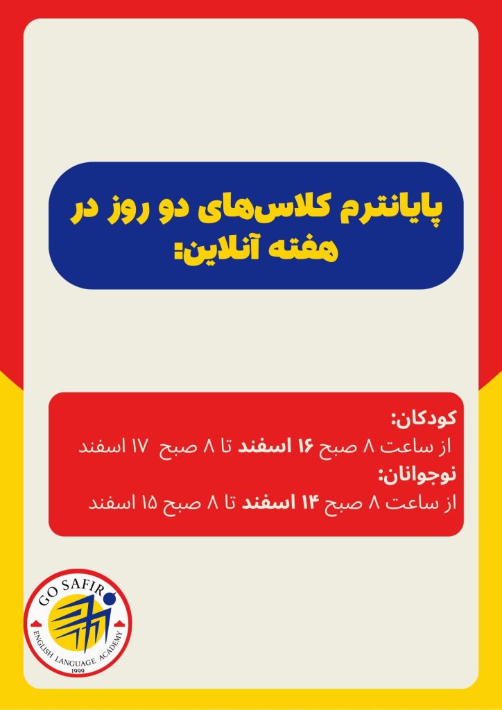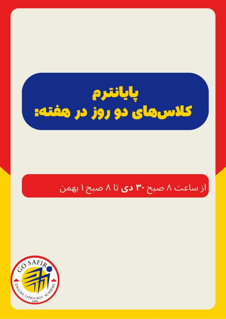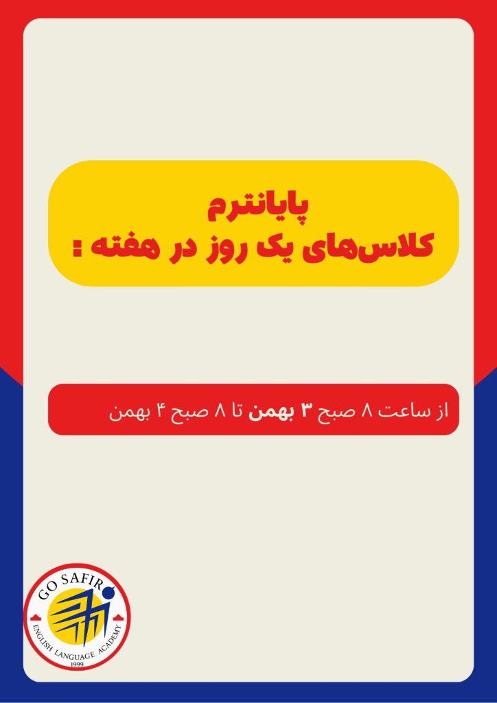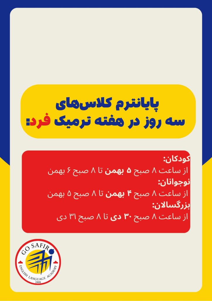 قابل توجه دانشجویان گرامی امتحان شفاهی در جلسه آخر کلاس طبق تقویم آموزشی برگزار می گردد.